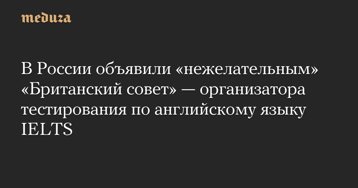 Генпрокуратура РФ объявила «нежелательной организацией» British Council («Британский совет»), одного из организаторов тестов по английскому языку IELTS.