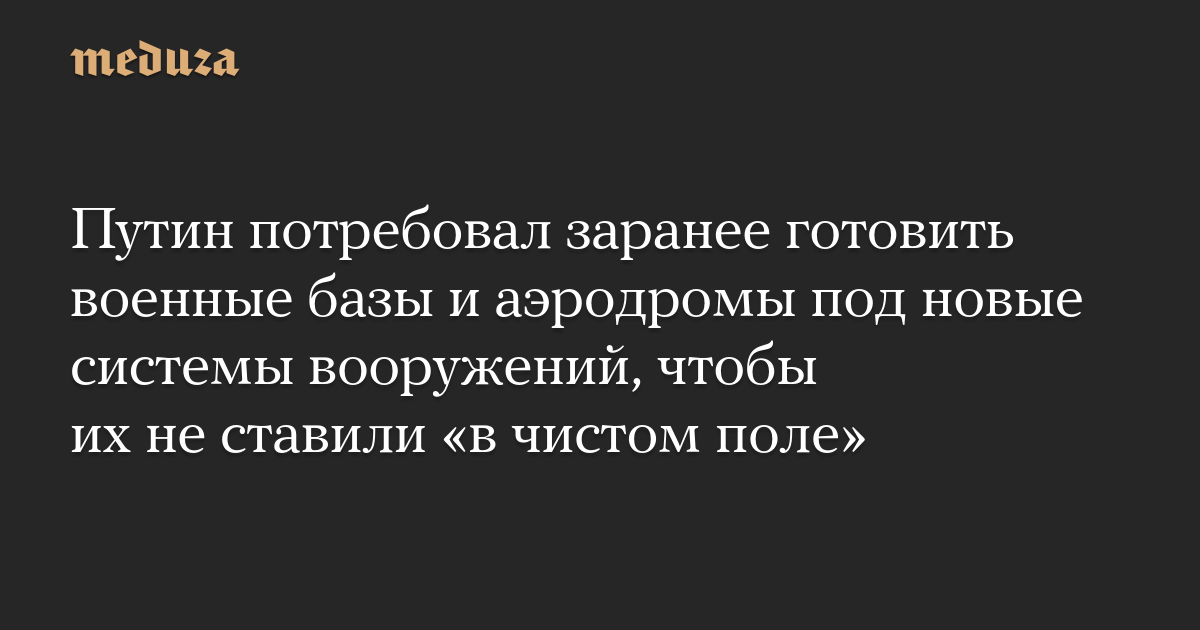 Путин потребовал заранее готовить военные базы и аэродромы под новые системы вооружений, чтобы их не ставили «в чистом поле»