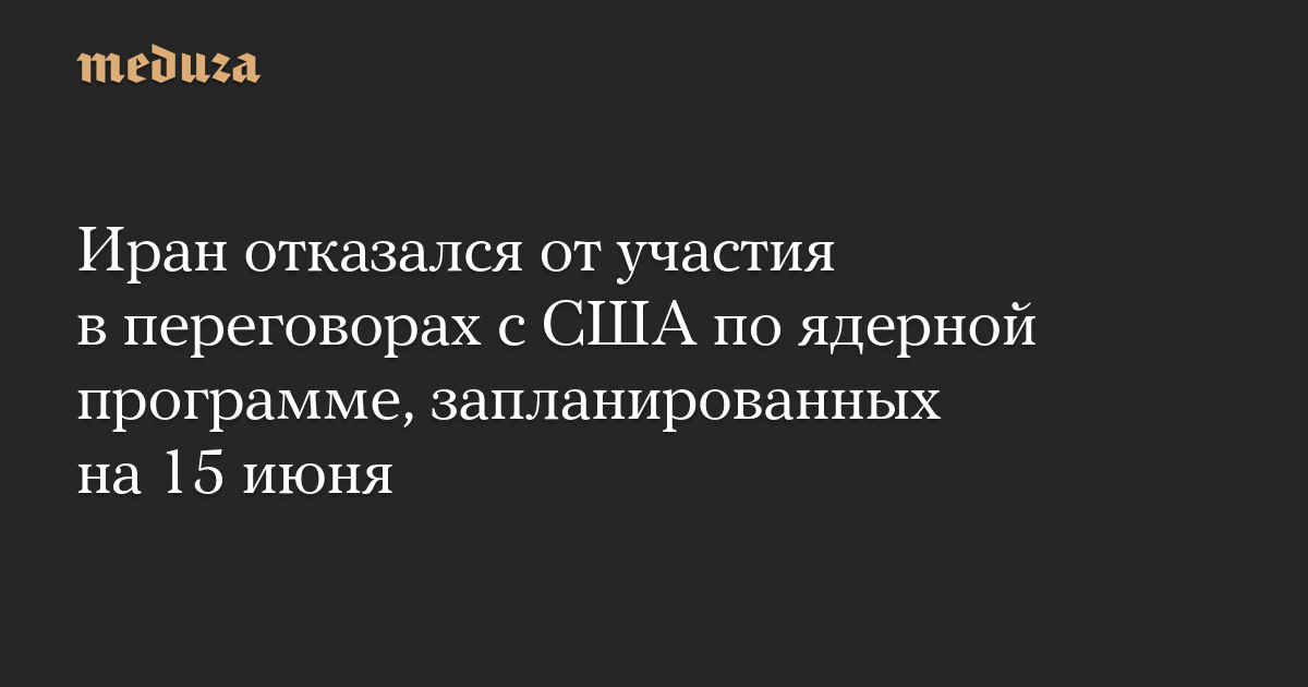Иран отказался от участия в переговорах с США по ядерной программе, запланированных на 15 июня