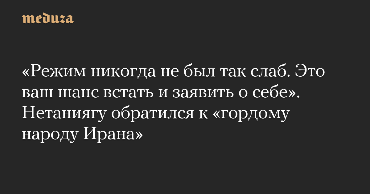 «Режим никогда не был так слаб. Это ваш шанс встать и заявить о себе». Нетаниягу обратился к «гордому народу Ирана»