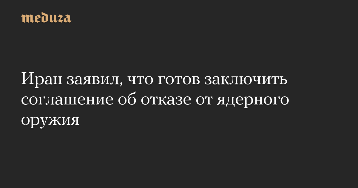 Иран заявил, что готов заключить соглашение об отказе от ядерного оружия