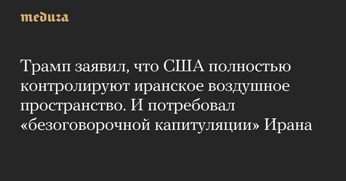 Трамп заявил, что США полностью контролируют иранское воздушное пространство. И потребовал «безоговорочной капитуляции» Ирана