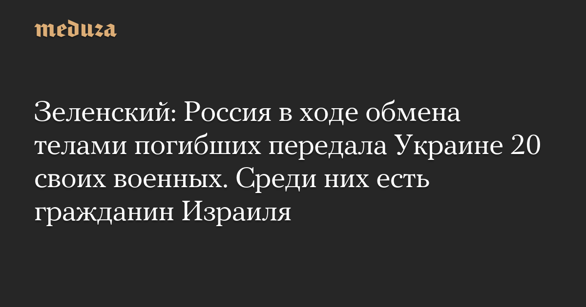 Зеленский: Россия в ходе обмена телами погибших передала Украине 20 своих военных. Среди них есть гражданин Израиля