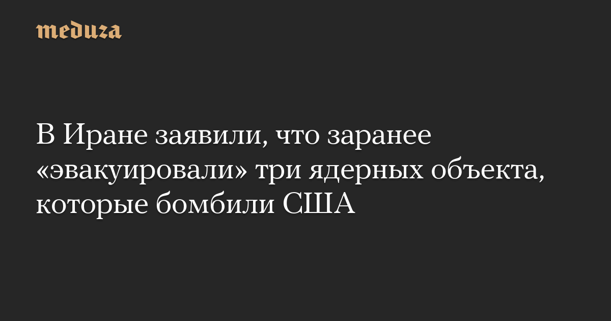 Власти Ирана уже некоторое время назад «эвакуировали» три ядерных объекта, по которым нанесли удары военные США. Об этом, как пишет Reuters, сообщил заместитель главы иранской государственной телерадиовещательной компании Хасан Абедини.