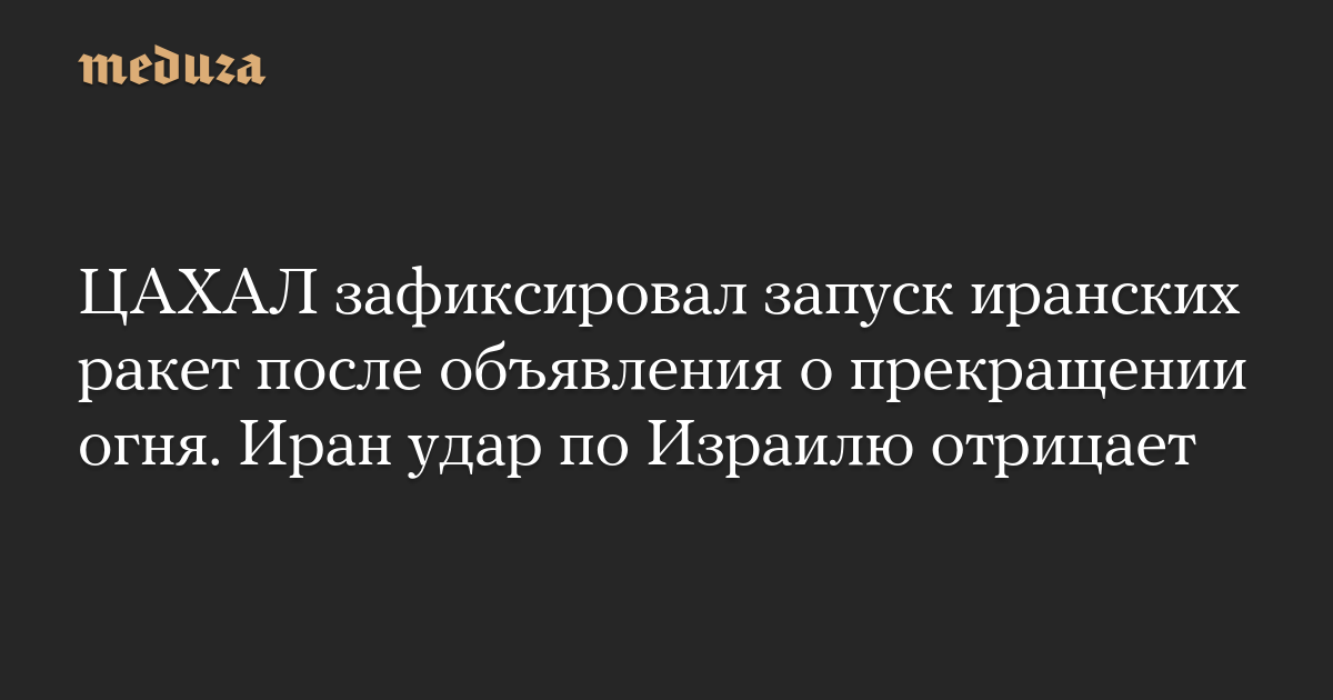 Обновление: Иранские СМИ, в том числе агентство Tasnim, сообщают, что Генштаб Вооруженных сил отрицает запуск ракет по Израилю после того, как соглашение о прекращении огня вступило в силу.