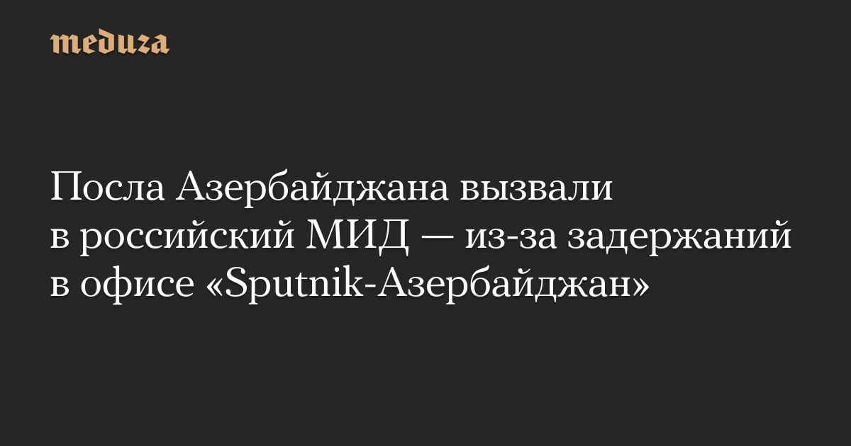 Посла Азербайджана вызвали в российский МИД — из-за задержаний в офисе «Sputnik-Азербайджан»