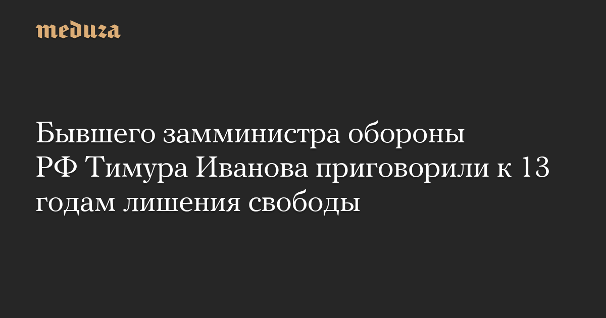 Мосгорсуд приговорил бывшего заместителя министра обороны РФ Тимура Иванова к 13 годам колонии по обвинению в хищении и легализации преступных доходов, сообщает «Интерфакс» 1 июля.