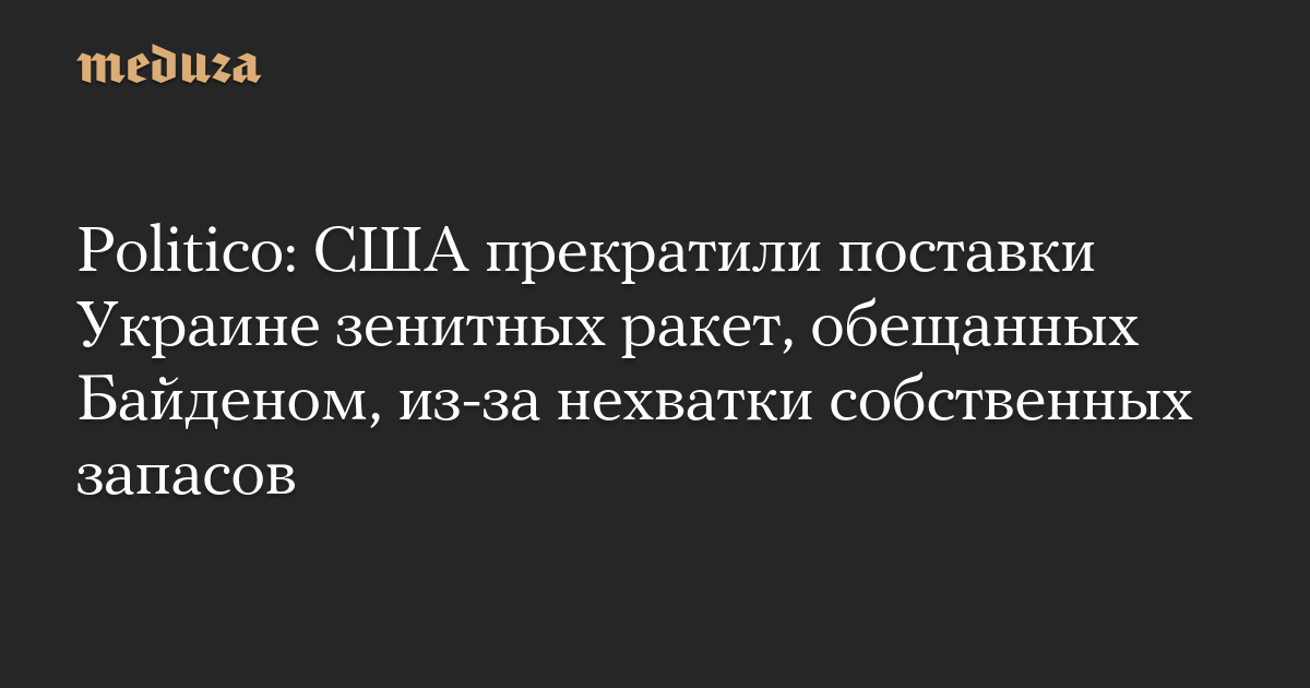 Politico: США прекратили поставки Украине зенитных ракет, обещанных Байденом, из-за нехватки собственных запасов
