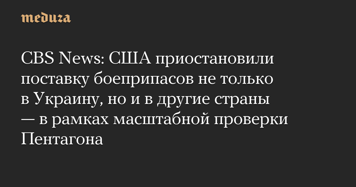 CBS News: США приостановили поставку боеприпасов не только в Украину, но и в другие страны — в рамках масштабной проверки Пентагона