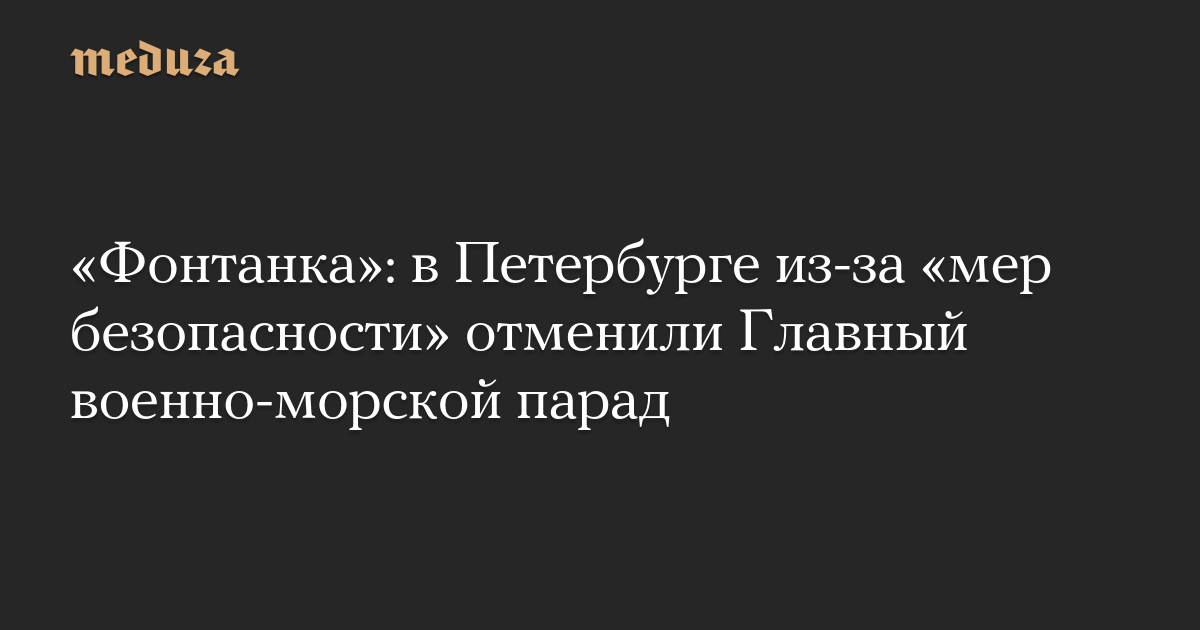 «Фонтанка»: в Петербурге из-за «мер безопасности» отменили Главный военно-морской парад