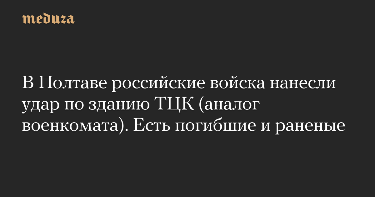 В Полтаве российские войска нанесли удар по зданию ТЦК (аналог военкомата). Есть погибшие и раненые