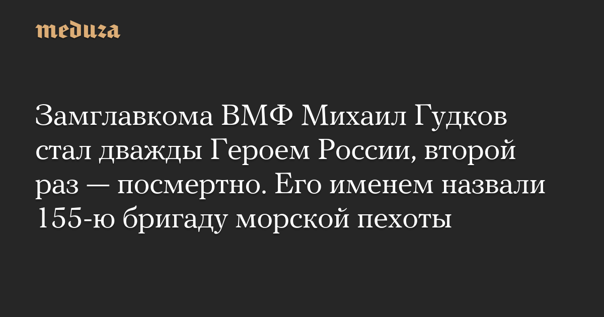 Замглавкома ВМФ Михаил Гудков стал дважды Героем России, второй раз — посмертно. Его именем назвали 155-ю бригаду морской пехоты