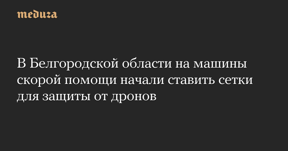 Издание публикует фотографию такого автомобиля с защитой и напоминает, что установить антидроновые сетки на все скорые помощи в приграничных районах распорядился глава области Вячеслав Гладков.