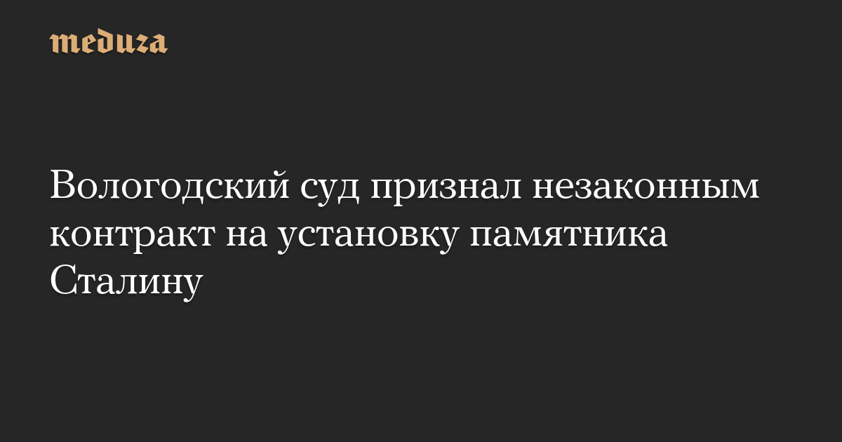 Арбитражный суд Вологодской области полностью удовлетворил иск прокуратуры, требовавшей признать недействительным контракт на установку памятника Иосифу Сталину возле музея «Вологодская ссылка».