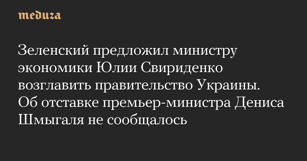 Зеленский предложил министру экономики Юлии Свириденко возглавить правительство Украины. Об отставке премьер-министра Дениса Шмыгаля не сообщалось