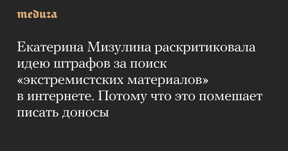 Екатерина Мизулина раскритиковала идею штрафов за поиск «экстремистских материалов» в интернете. Потому что это помешает писать доносы