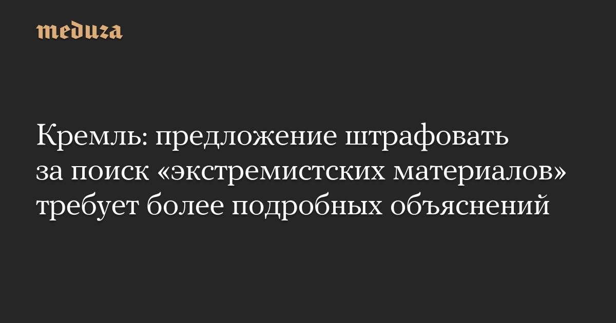 Кремль: предложение штрафовать за поиск «экстремистских материалов» требует более подробных объяснений