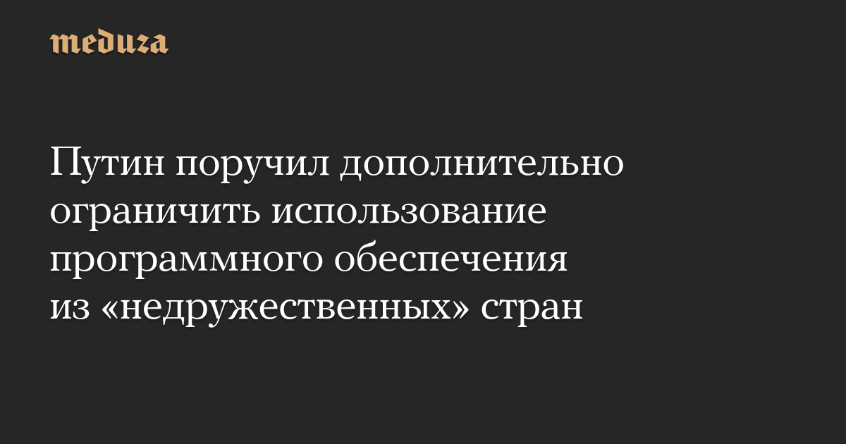 Президент России Владимир Путин поручил правительству подготовить предложения о том, как дополнительно ограничить использование программного обеспечения из стран, объявленных в России «недружественными».