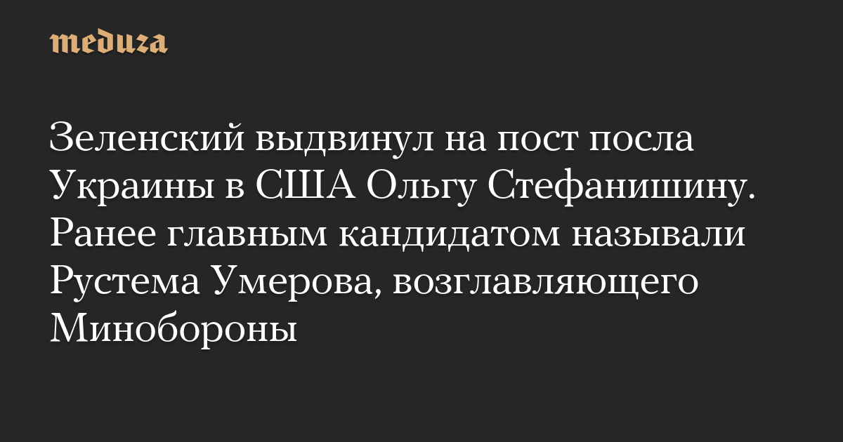 Зеленский выдвинул на пост посла Украины в США Ольгу Стефанишину. Ранее главным кандидатом называли Рустема Умерова, возглавляющего Минобороны
