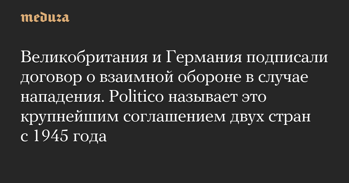 Великобритания и Германия подписали договор о взаимной обороне в случае нападения. Politico называет это крупнейшим соглашением двух стран с 1945 года