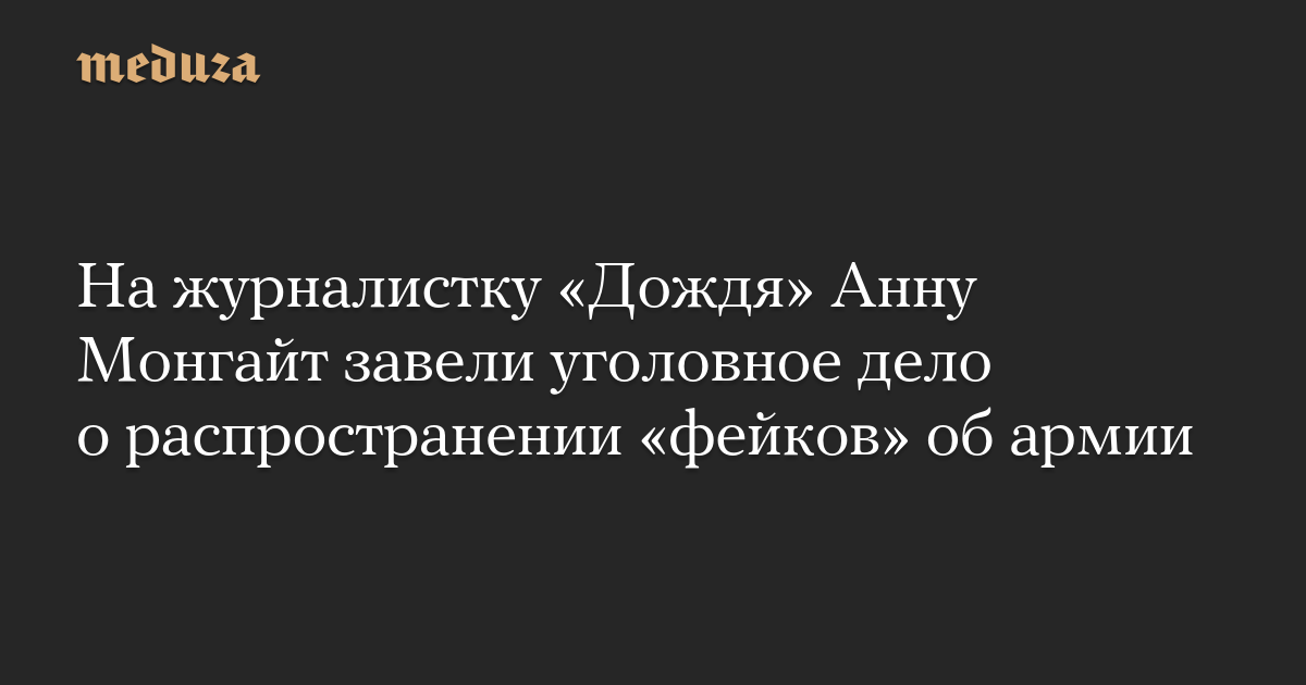 На журналистку «Дождя» Анну Монгайт завели уголовное дело о распространении «фейков» об армии