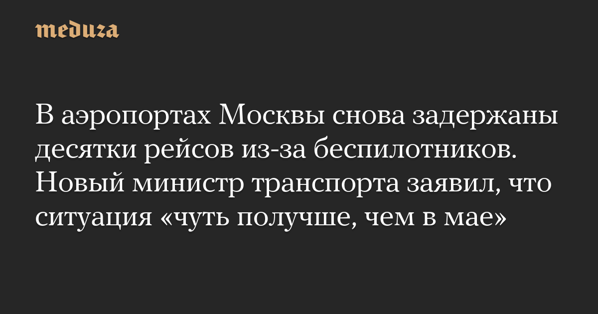 В аэропортах Москвы снова задержаны десятки рейсов из-за беспилотников. Новый министр транспорта заявил, что ситуация «чуть получше, чем в мае»