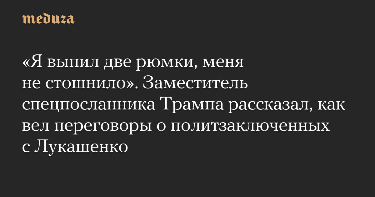 «Я выпил две рюмки, меня не стошнило». Заместитель спецпосланника Трампа рассказал, как вел переговоры о политзаключенных с Лукашенко