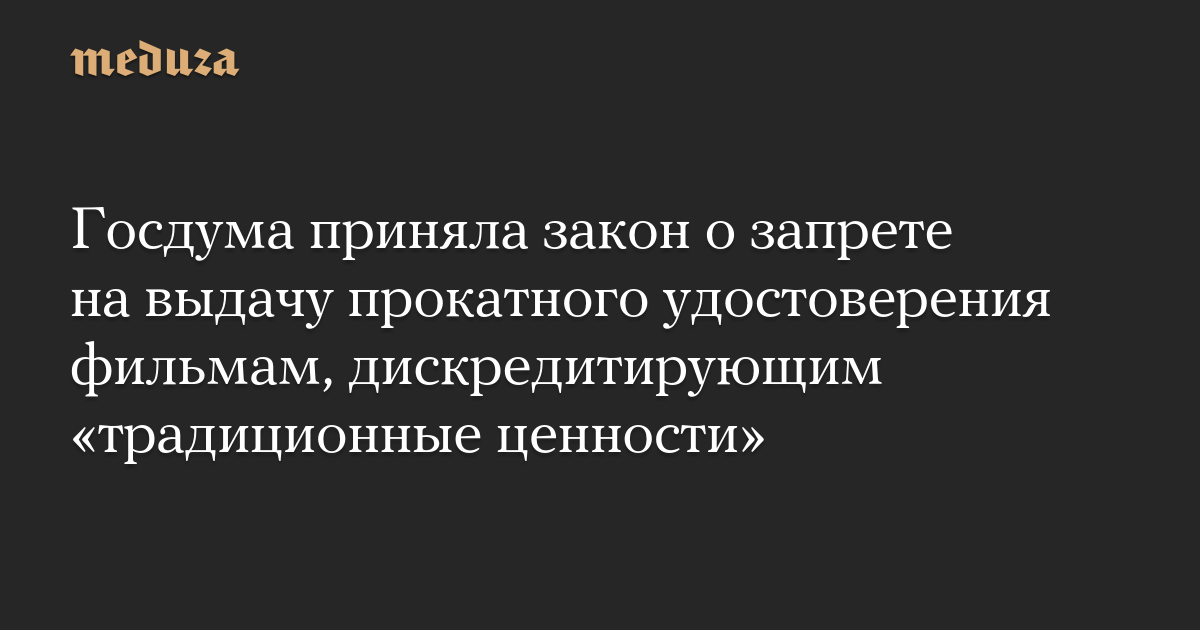 Госдума приняла закон о запрете на выдачу прокатного удостоверения фильмам, дискредитирующим «традиционные ценности»