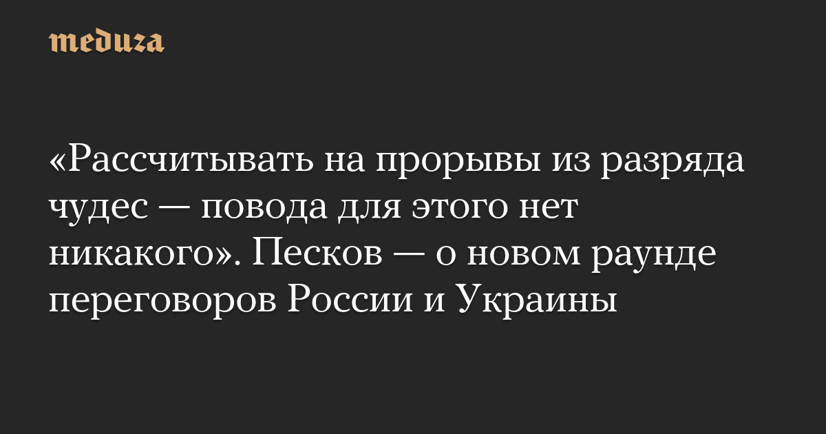 «Рассчитывать на прорывы из разряда чудес — повода для этого нет никакого». Песков — о новом раунде переговоров России и Украины