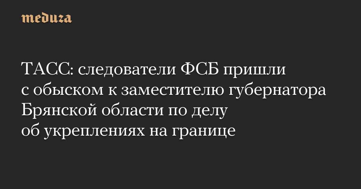 ТАСС: следователи ФСБ пришли с обыском к заместителю губернатора Брянской области по делу об укреплениях на границе
