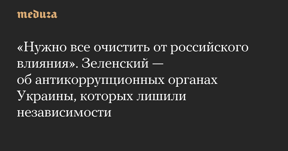 «Антикоррупционная инфраструктура будет работать, только без российского влияния — от этого нужно все очистить. И справедливости должно стать больше», — заявил Зеленский в обращении.