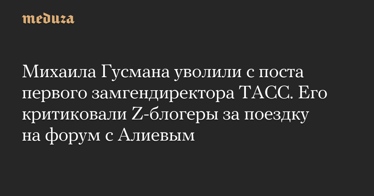 Михаила Гусмана уволили с поста первого замгендиректора ТАСС. Его критиковали Z-блогеры за поездку на форум с Алиевым