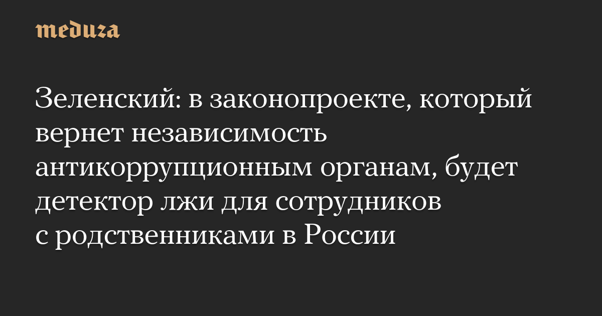 Законопроект, который должен вернуть независимость антикоррупционным органам, предусматривает, что сотрудников с родственниками в России будут проверять на детекторе лжи раз в два года, рассказал Владимир Зеленский на встрече с журналистами 24 июля, сообщили Hromadske, «Суспільне» и «РБК-Украина».