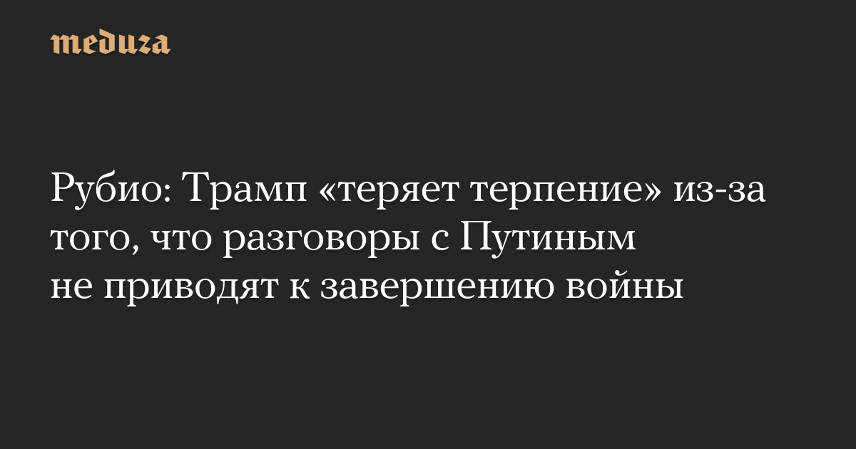 Рубио: Трамп «теряет терпение» из-за того, что разговоры с Путиным не приводят к завершению войны