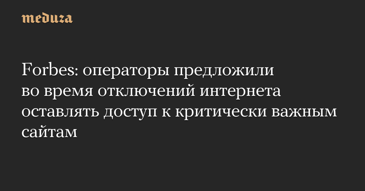 Forbes: операторы предложили во время отключений интернета оставлять доступ к критически важным сайтам