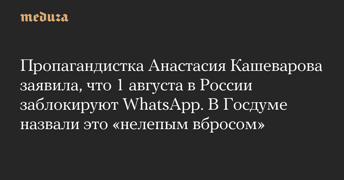 Пропагандистка Анастасия Кашеварова заявила, что 1 августа в России заблокируют WhatsApp. В Госдуме назвали это «нелепым вбросом»