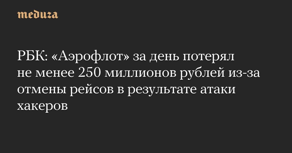 РБК: «Аэрофлот» за день потерял не менее 250 миллионов рублей из-за отмены рейсов в результате атаки хакеров