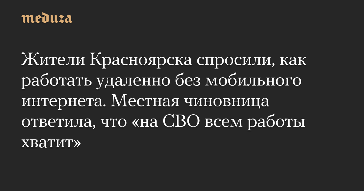 Жители Красноярска спросили, как работать удаленно без мобильного интернета. Местная чиновница ответила, что «на СВО всем работы хватит»