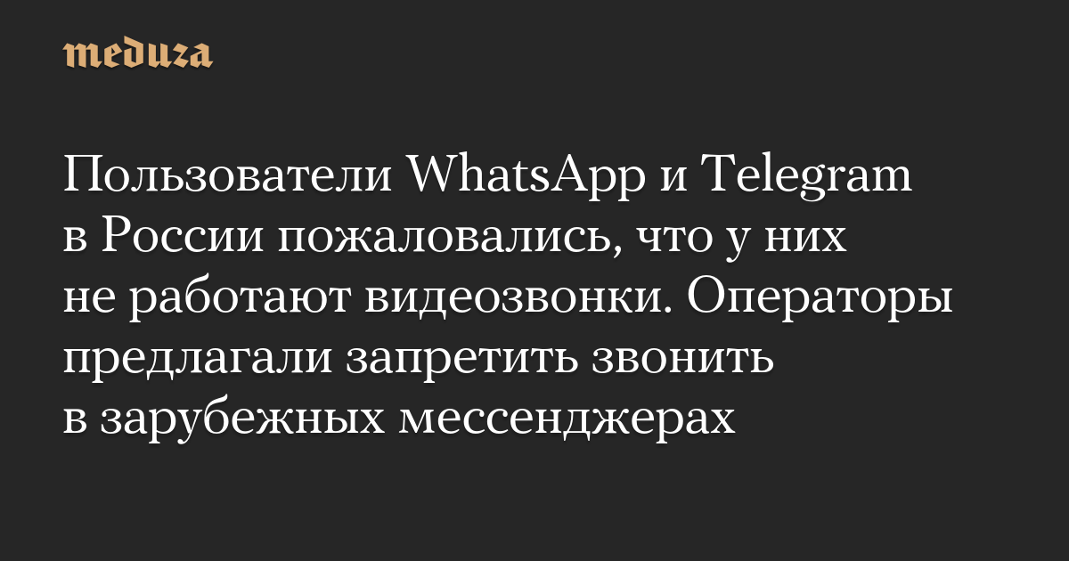 Пользователи WhatsApp и Telegram в России пожаловались, что у них не работают видеозвонки. Операторы предлагали запретить звонить в зарубежных мессенджерах