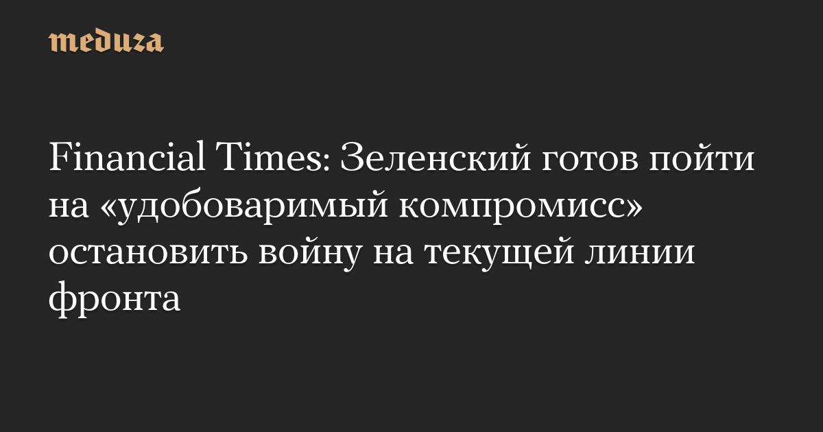 Financial Times: Зеленский готов пойти на «удобоваримый компромисс» остановить войну на текущей линии фронта