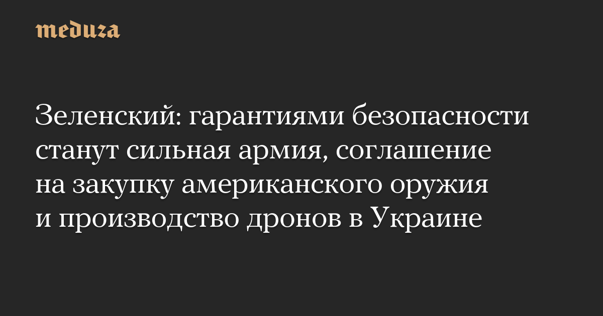 В этом же предложении говорилось, что Киев и Вашингтон заключат сделку на 50 миллиардов долларов на производство беспилотников украинскими компаниями. Собственное производство дронов в Украине Зеленский назвал третьей частью гарантий безопасности.