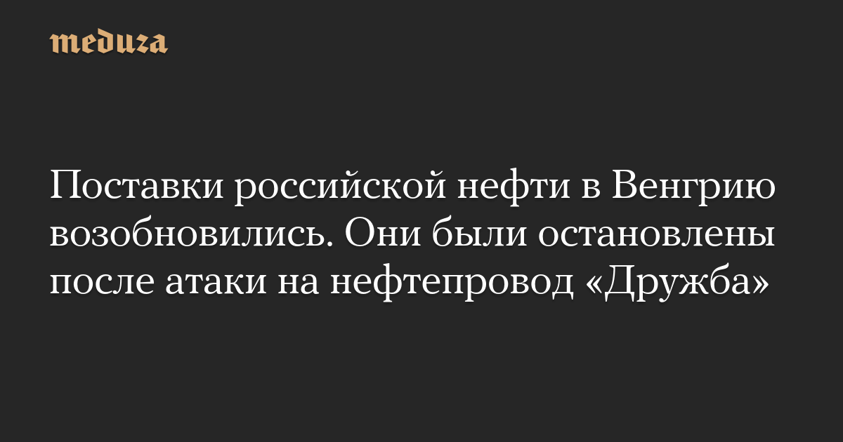 Поставки российской нефти в Венгрию возобновились. Они были остановлены после атаки на нефтепровод «Дружба»