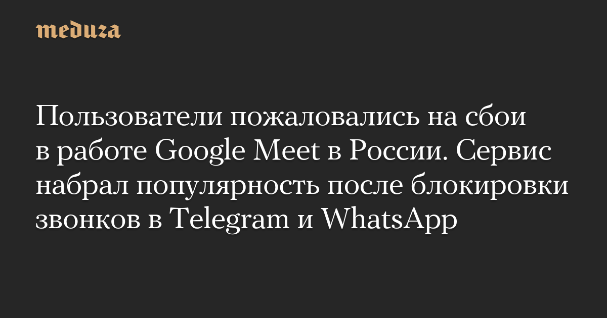 Пользователи пожаловались на сбои в работе Google Meet в России. Сервис набрал популярность после блокировки звонков в Telegram и WhatsApp