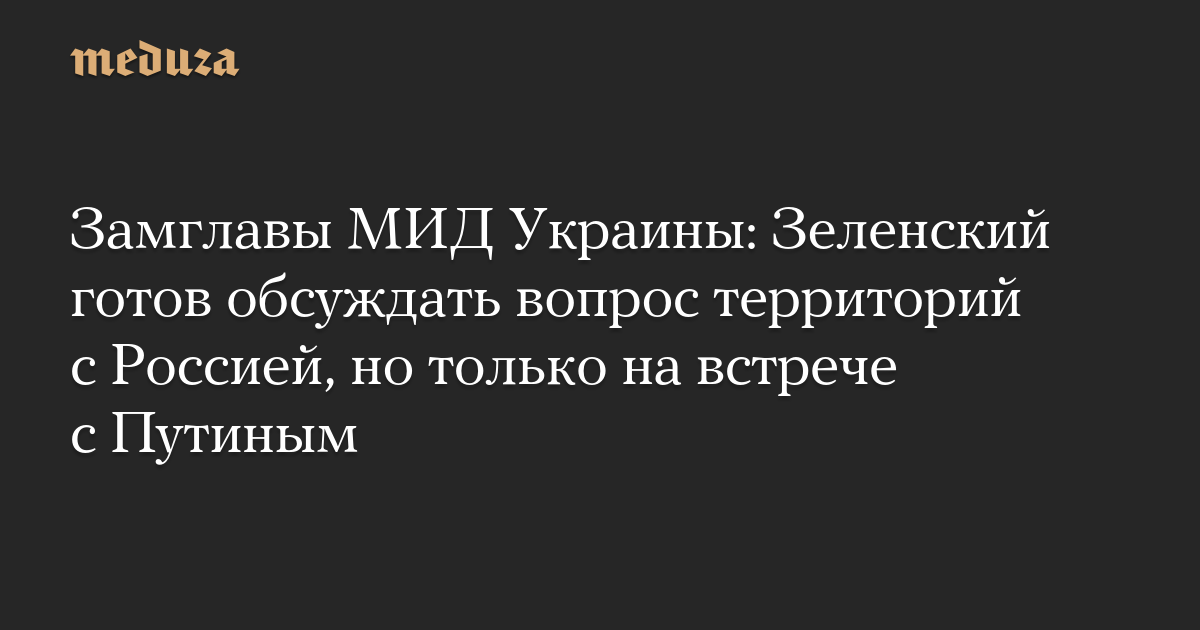 Замглавы МИД Украины: Зеленский готов обсуждать вопрос территорий с Россией, но только на встрече с Путиным