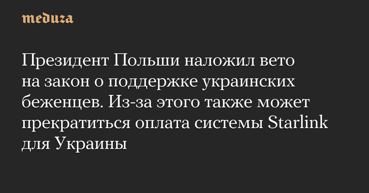 Президент Польши наложил вето на закон о поддержке украинских беженцев. Из-за этого также может прекратиться оплата системы Starlink для Украины