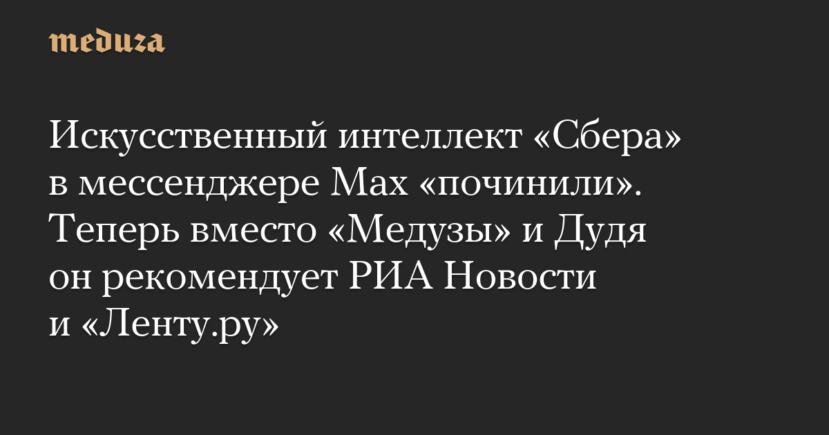 Искусственный интеллект «Сбера» в мессенджере Max «починили». Теперь вместо «Медузы» и Дудя он рекомендует РИА Новости и «Ленту.ру»