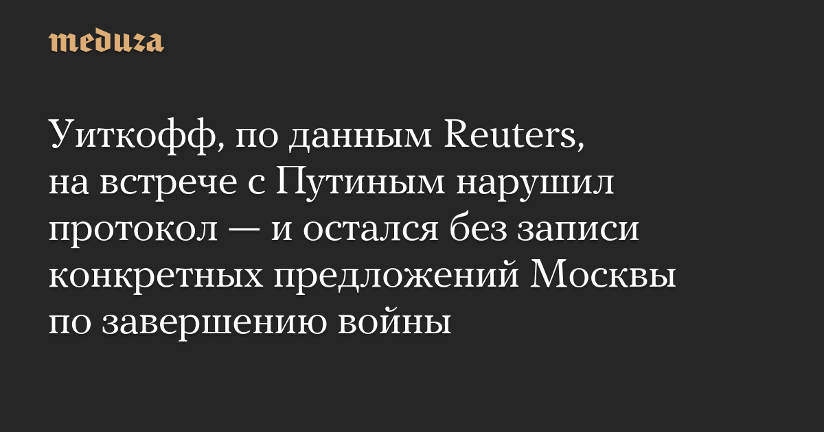 Уиткофф отправился на переговоры без стенографиста Государственного департамента США, рассказал один из собеседников агентства. Почему это произошло, неизвестно. В итоге представитель Трампа остался без конкретных предложений Путина по завершению российско-украинской войны.