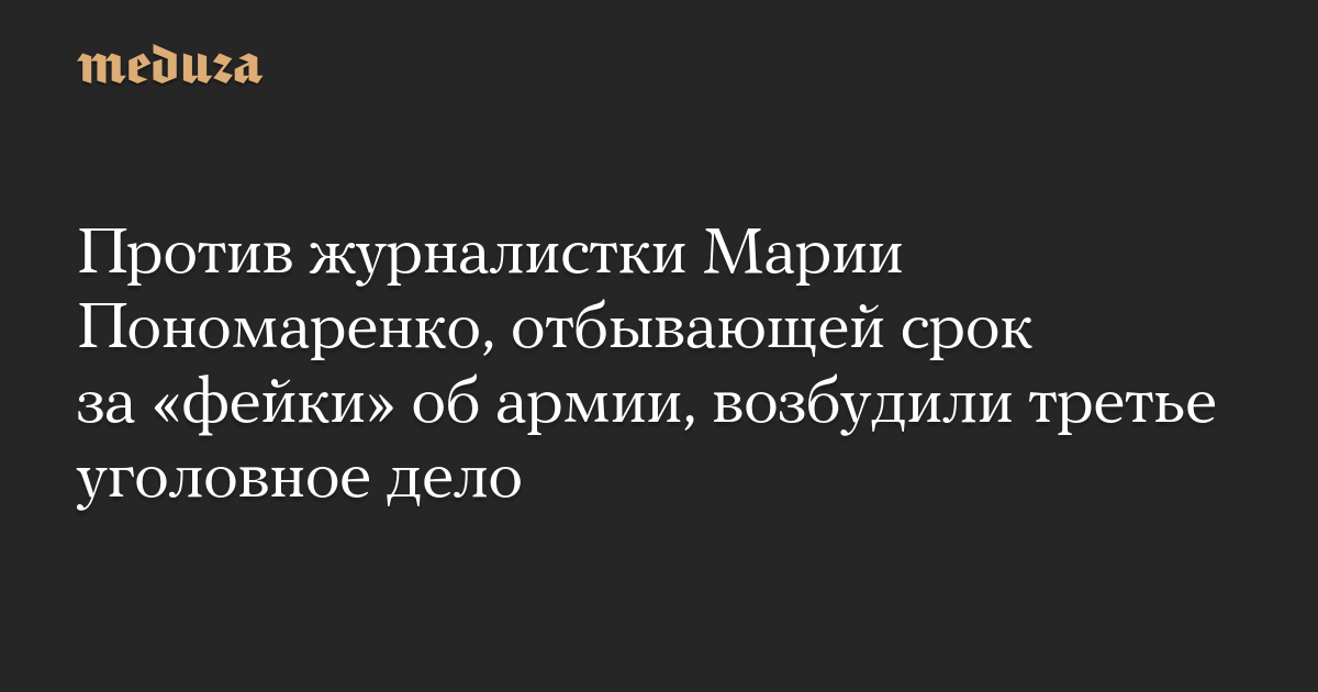 Против журналистки Марии Пономаренко, осужденной в 2023 году за «фейки» об армии, возбудили третье уголовное дело, сообщает группа ее поддержки в телеграме.