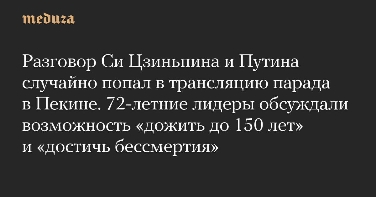 Разговор Си Цзиньпина и Путина случайно попал в трансляцию парада в Пекине. 72-летние лидеры обсуждали возможность «дожить до 150 лет» и «достичь бессмертия»