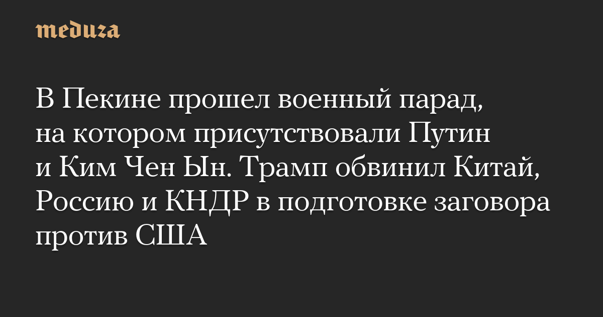 В Пекине прошел военный парад, на котором присутствовали Путин и Ким Чен Ын. Трамп обвинил Китай, Россию и КНДР в подготовке заговора против США
